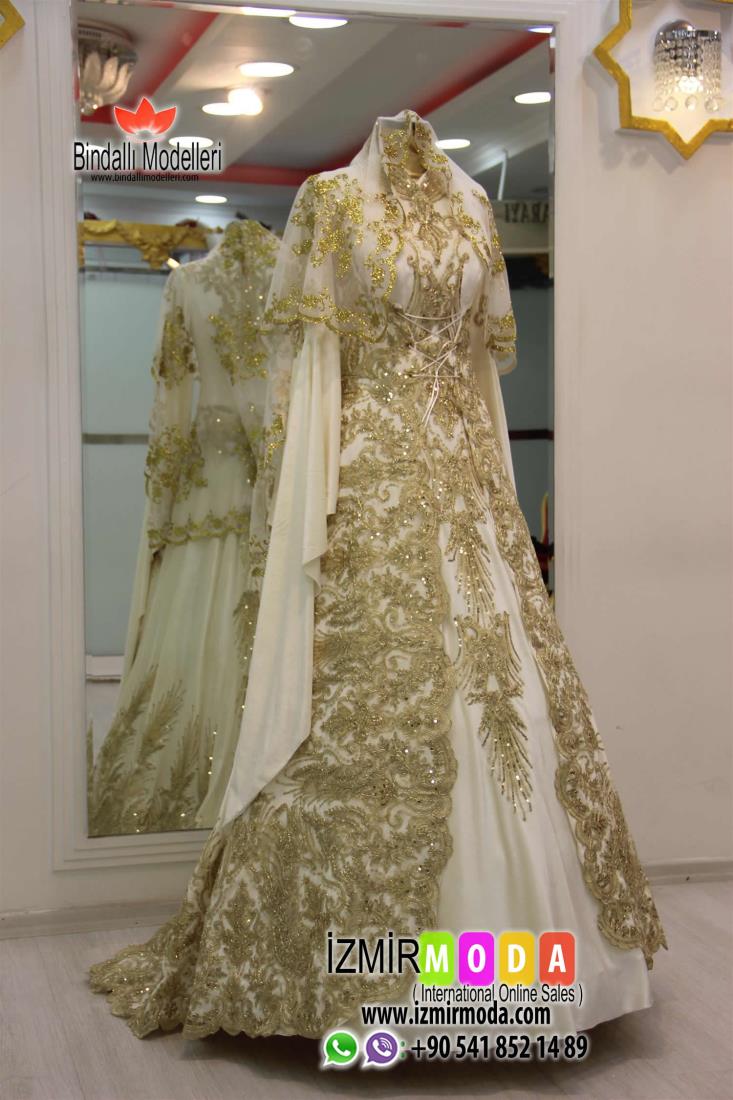 Tesettür Kaftan-1201 Beyaz Gold